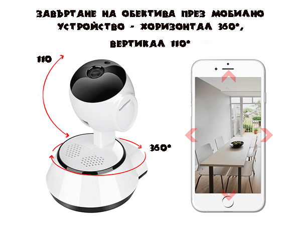 - Управление: по хоризонталата 360° и 110° по вертикалата;